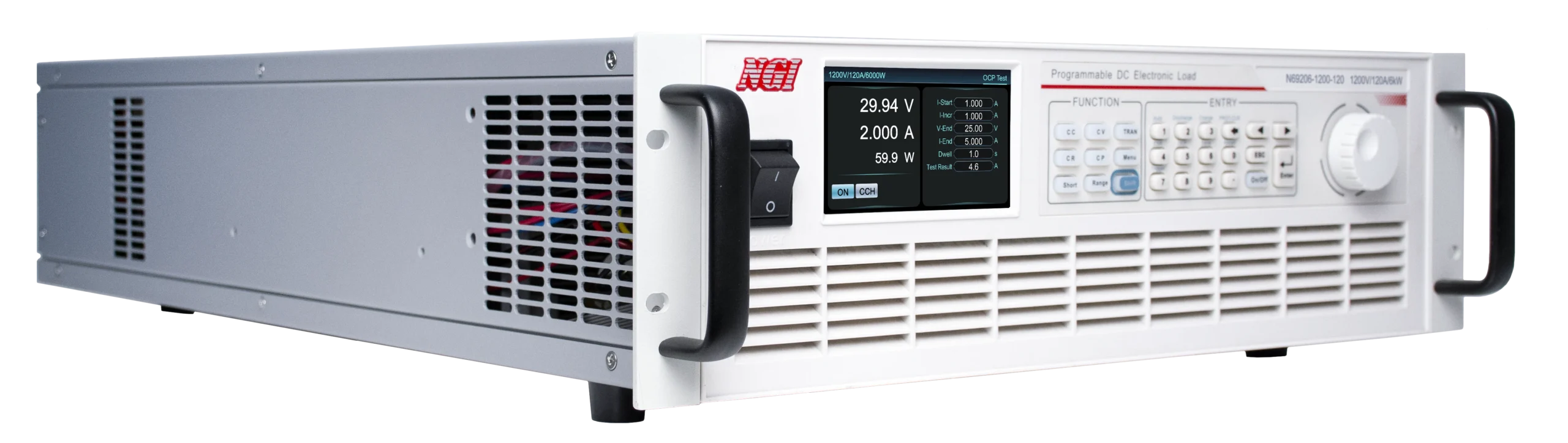 N69200 series is a high performance high power programmable DC electronic load with high reliability, high precision and multi-function.N69200 series has three voltage specifications: 150V, 600V, and 1200V. A standard 19” 3U chassis can be up to 6kW. It supports parallel control and can realize power expansion through master+master and master+slave. N69200 supports three ranges of voltage, current, power and resistance, and provides high-precision measurement, which makes the test range wider of a single unit.