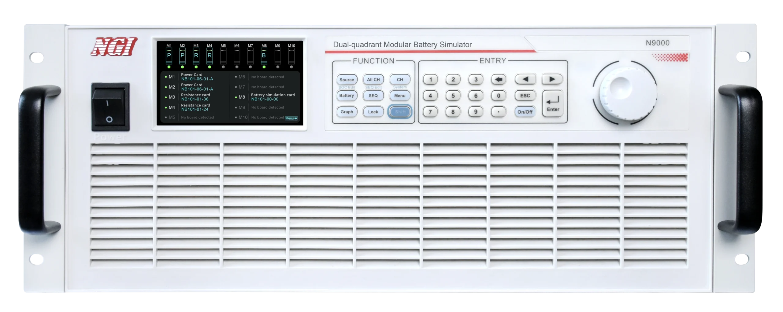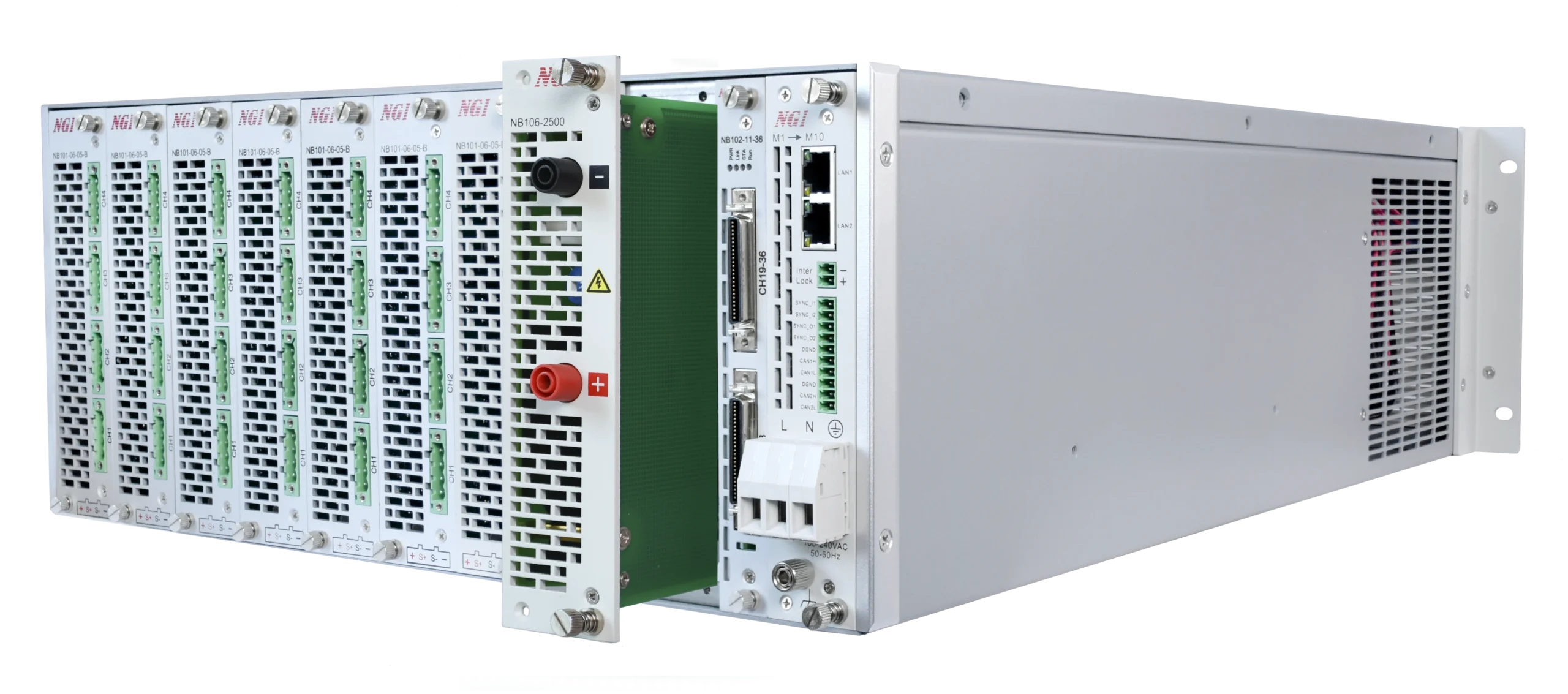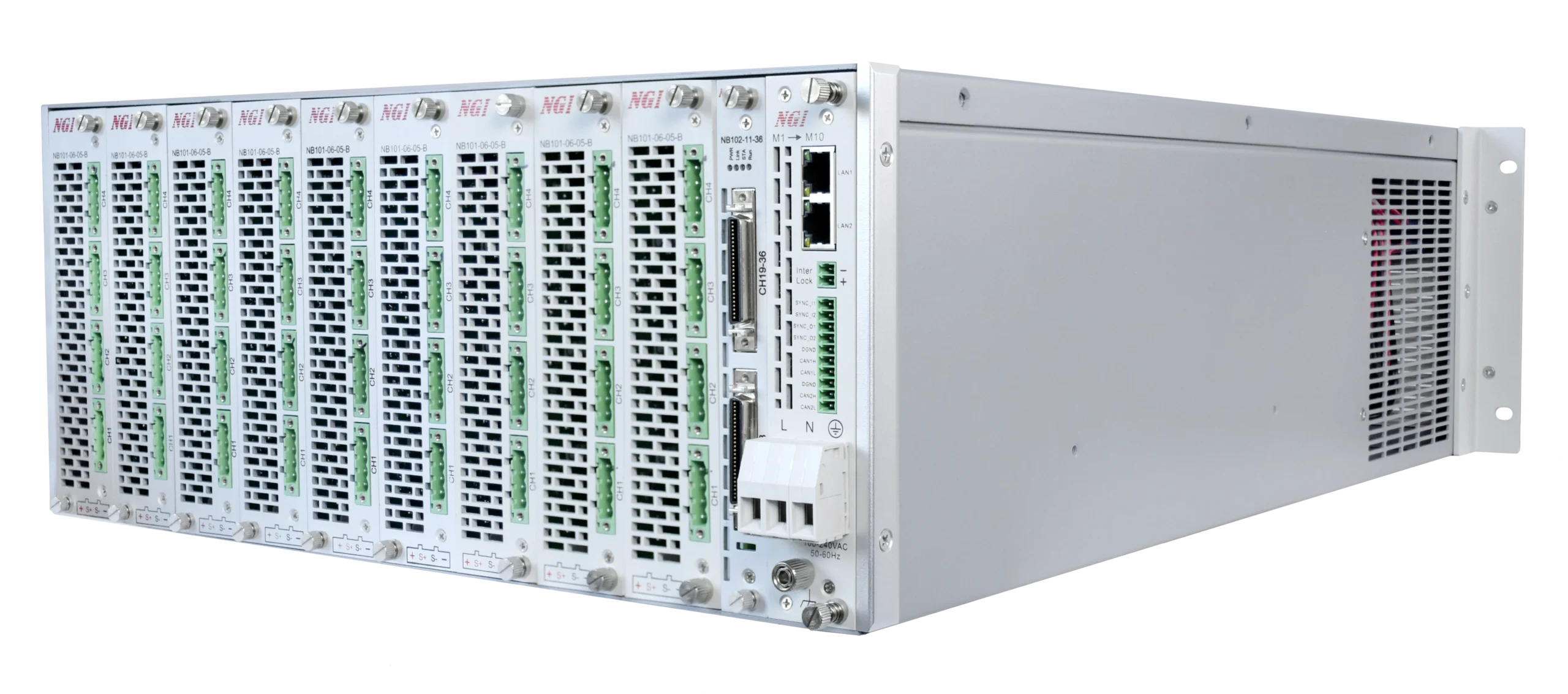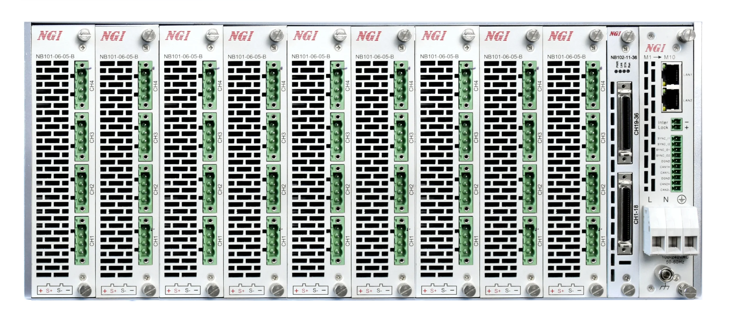 N9000 series is a high real-time, high-synchronous, high-power measurement and control platform, consisting of N9000 measurement and control chassis and a variety of modules. N9000 is a standard chassis with 4U height and 19-inch width, support for the insertion of battery analogue modules, programmable resistance modules, high-voltage power supply modules and other types, the chassis can be integrated into 10 slot measurement and control modules, electrical isolation of the modules. N9000 series supports local/remote control and synchronous trigger function, which can realize multi-module high-speed synchronous control, and is widely applicable to multi-channel, high-integrity, high-power automated test and measurement scenarios.